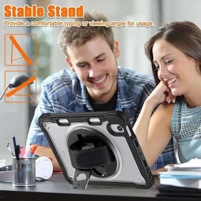 360° Rotating Hand Strap: The 360° rotating hand strap design offers secure and flexible handling options, allowing you to comfortably carry your iPad in any orientation, making it perfect for mobile professionals and students.