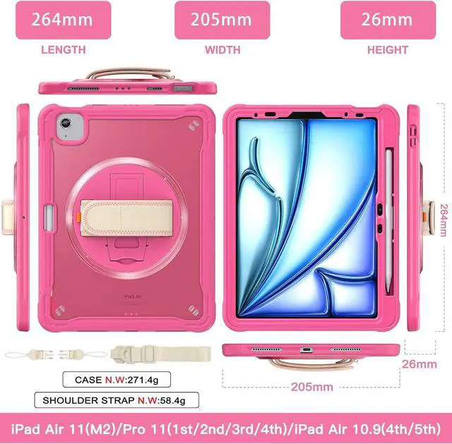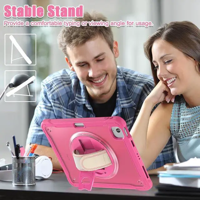 360° Rotating Hand Strap Design: With a 360° rotating hand strap design, this case offers versatile handling options, allowing you to comfortably carry your iPad Air in any orientation, making it ideal for on-the-go use.