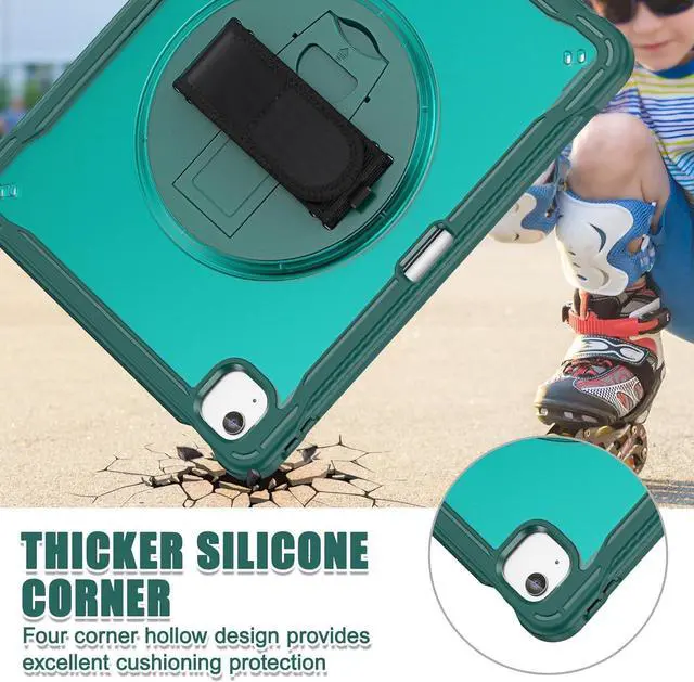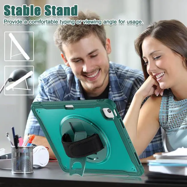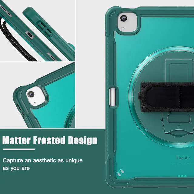 360° Rotating Hand Strap Design: With a 360° rotating hand strap design, this case offers versatile handling options, allowing you to comfortably carry your iPad Air in any orientation, making it ideal for on-the-go use.