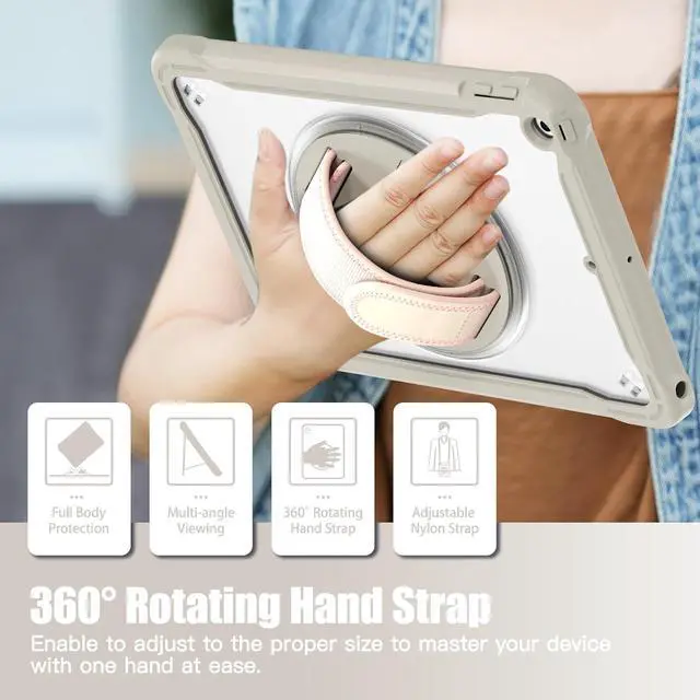 360° Rotating Hand Strap: The 360° rotating hand strap design offers secure and flexible handling options, allowing you to comfortably carry your iPad in any orientation, making it perfect for mobile professionals and students.