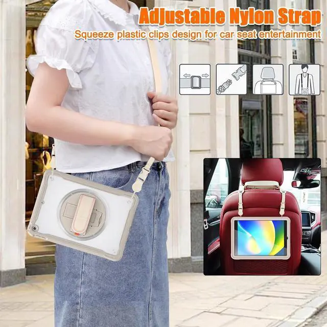 Foldable Hidden Stand and Adjustable Shoulder Strap: The case comes equipped with a foldable hidden stand that lets you prop up your iPad at various angles for hands-free viewing and typing. Additionally, it includes an adjustable nylon shoulder strap for car rear seat suspension and various outdoor scenes