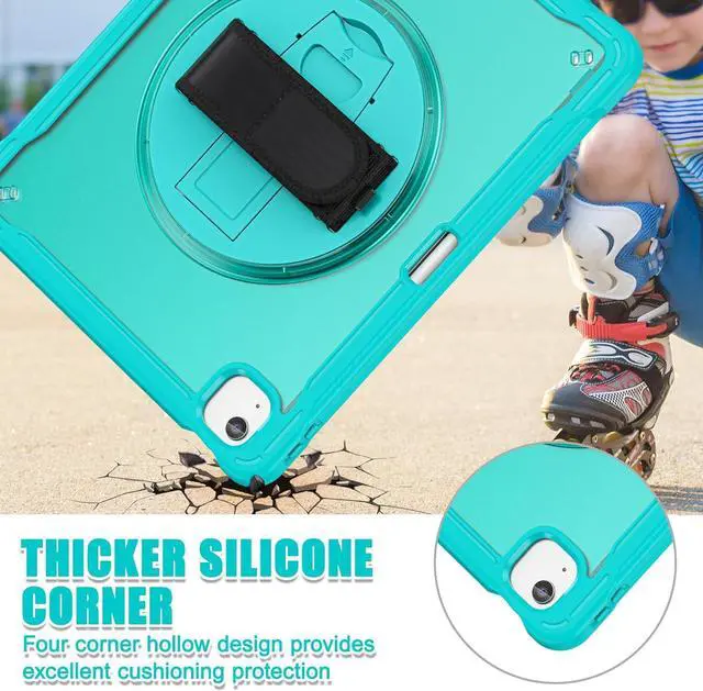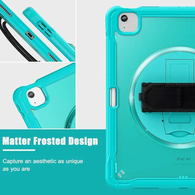 360° Rotating Hand Strap Design: With a 360° rotating hand strap design, this case offers versatile handling options, allowing you to comfortably carry your iPad Air in any orientation, making it ideal for on-the-go use.