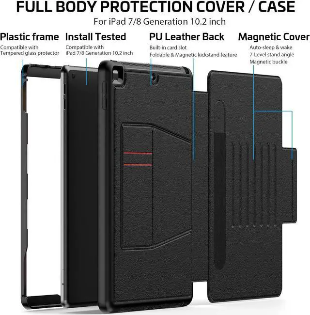Case for iPad 9th/8th/7th Generation Case 10.2'', Thin, Strong Magnetic Stand Cover with Absorbing Multi-Angles Stand, Pen Holder, Card Slot for iPad 10.2 Inch 2021/2020/2019(Black)
