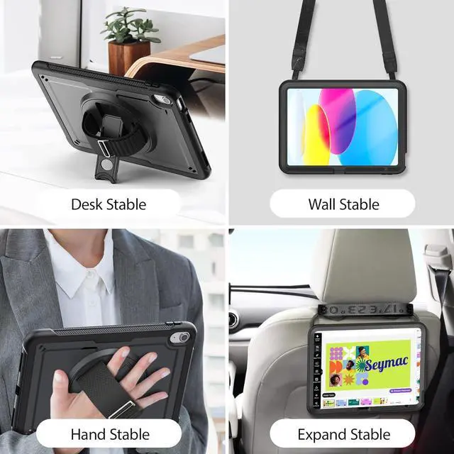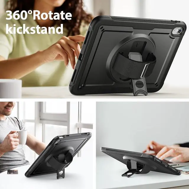 [Durable Material and Spring type bracket]- Case from Carbon fiber pattern design premium PC and anti-skidding TPE, our case for iPad 10th Generation 10.9 inch/ A16 11 Inch includes a built-in screen protector to offer full-body protection. It's not only shockproof and long-lasting but also ensures a comfortable grip during use. Convenient Spring type bracket, easy to place with just one pull.