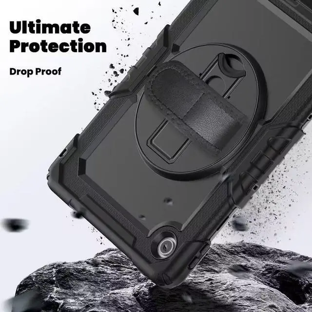 Stand + Shoulder Strap The gorgeous 10.1 -inch display is an amazing way to watch movies or draw your next masterpiece. However, it also needs a free display angle. This case provides a bracket that can rotate 360 stand and adjustable length shoulder strap. The stand can provide multi -angle support. The shoulder strap can hang your tablet somewhere.