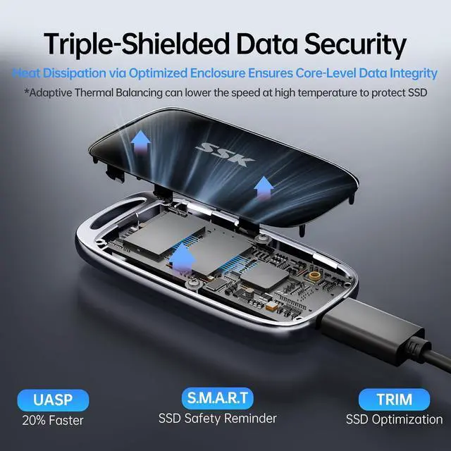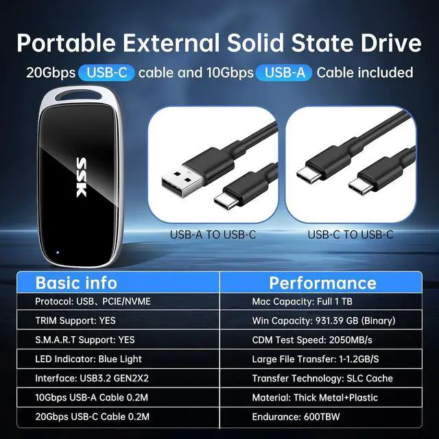 Blue Indicator: This external ssd features an LED that displays real-time activity during data transfers, preventint accidental disconnections and data loss. *Always Eject Safely, Never unplug the ssd drive during transfers