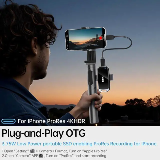 For iphone/OTG: This external ssd supports OTG for direct mobile device connectivity, operates at <5W power consumption, and enables iPhone ProRes video recording for professional-grade on-the-go portable ssd