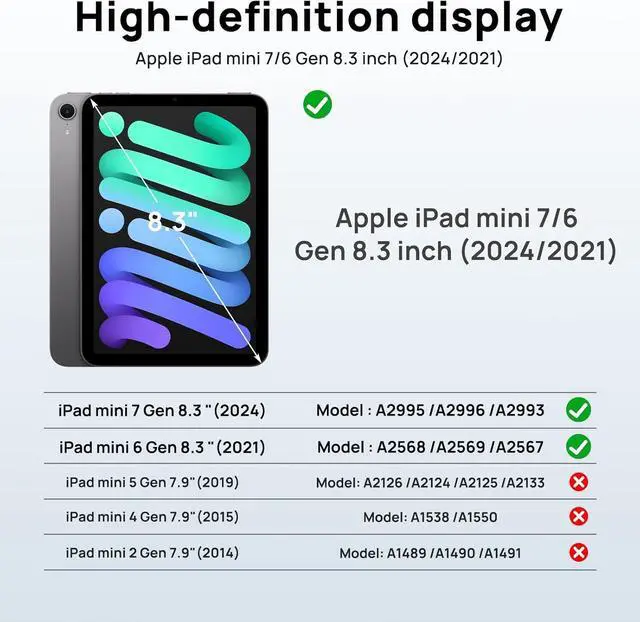 [Screen protector and built-in pencil holder]: The screen cover of this iPad Mini a17 pro 2024/2021 case has a built-in screen protector to fully protect your iPad, but if you bring your own tempered glass screen protector, the built-in screen protector can be removed with a press. Built-in pencil holder that won't interfere with your stylus pen magnetic attachment charging function and securely stores your pen.
