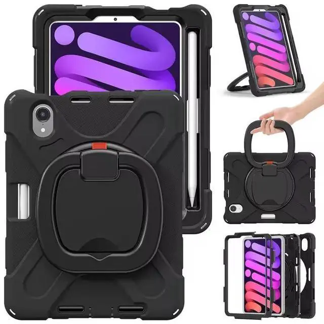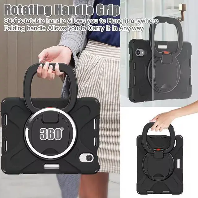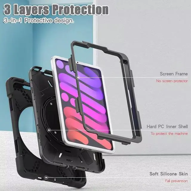Handle/Stand & Shoulder Strap]: This iPad Mini 2024/2021 case have a 360° rotation system that includes a kickstand and a hand strap, by rotating it, you can hold your iPad at any angle, by utilizing the swivel and the stand, you can support your iPad at multiple angles. The adjustable shoulder strap (detachable) allows you to carry or hang your iPad at any time, so that you can provide more convenience in outdoor sports, traveling.