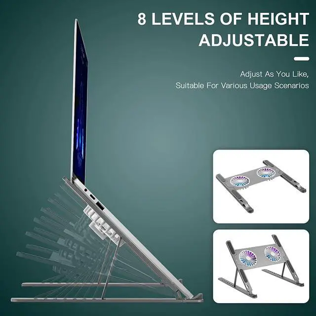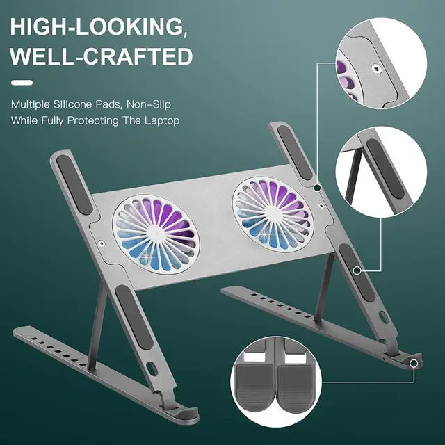 WELL PROTECTED: The laptop stand with fan has 10 non-slip rubber pads which can fix the computer well and protect the laptop. Protect laptops and desks from wear and tear. We insist on high-quality after-sales service and look forward to your communication with us.