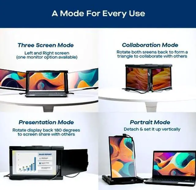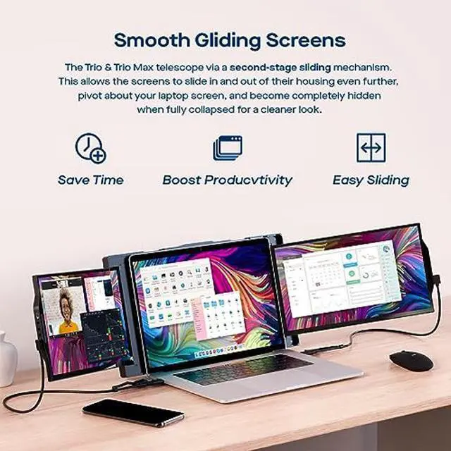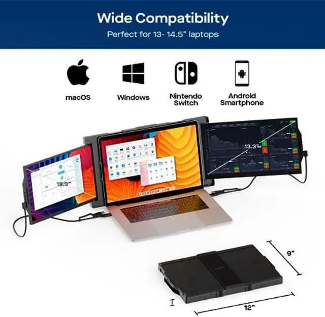 [(New Trio Laptop Monitor, Elevate Your Efficiency)] : Prepare to revolutionize your workflow with our upgraded 13.3" Trio external monitor - the ultimate enhancement for 13"-14" laptops. Seamlessly transform your laptop into a dynamic multi-screen workstation and unleash unrivaled productivity. Effortlessly transition from a single screen to a triple portable display and step into a new era of seamless multitasking.