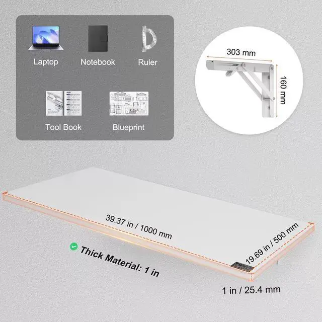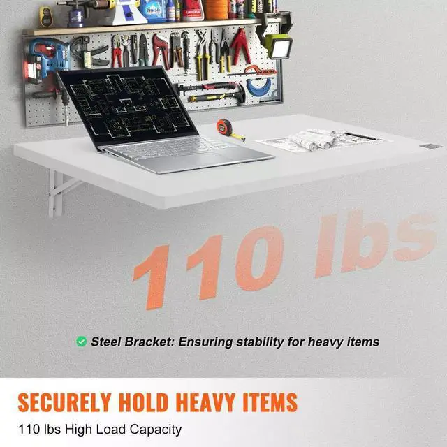 2. Designed with a spacious surface, this wall mounted desk meets diverse living and working needs. Whether as a desk or workstation, it comfortably accommodates decorations, books, laptops, and tools, keeping everything neatly organized.