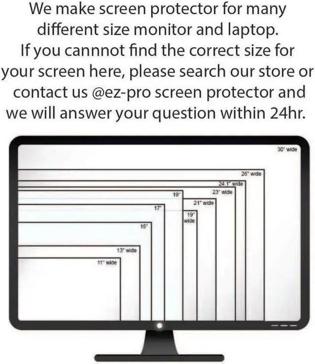 Actual Privacy Screen Filter dimensions are 19 inch measured diagonally. 16.1 inch width x 10.1 inch high. Compare your screen dimensions against our dimension before purchasing.
