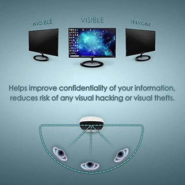Blocks visibility from side angles greater than 30 degrees from center, but NOT behind you.