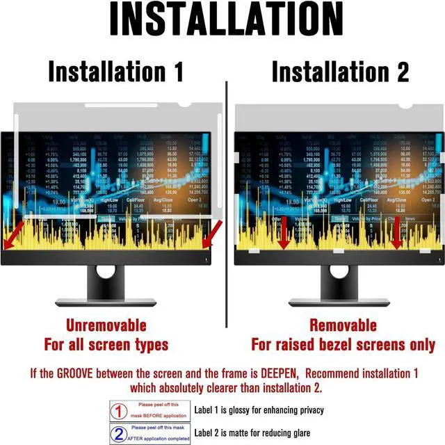 EASY TO INSTALLIf the GROOVE between the screen and the frame is DEEPEN, recommend unremovable installation which is clearer than removable. PLEASE CHECK WITH SPECIFICATION BEFORE INSTALLATION OR CONTACT US.