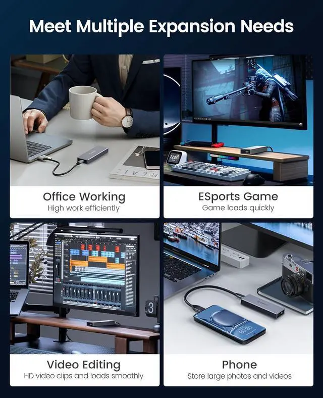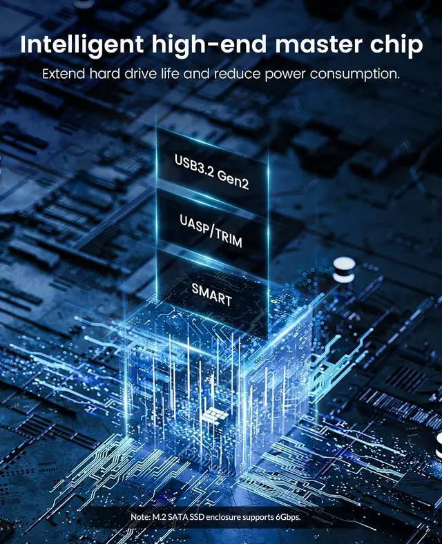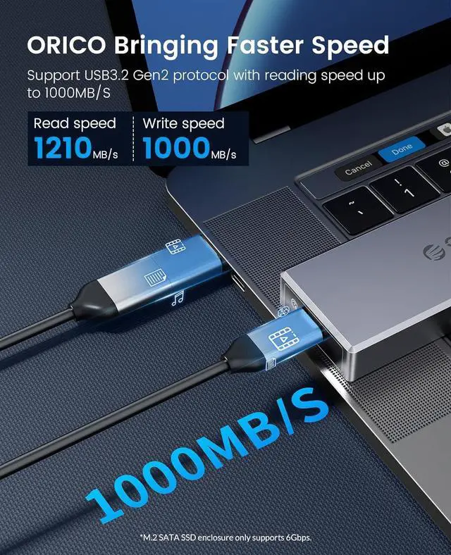 10Gbps Extreme SpeedThe NVMe enclosure interface is USB 3.2G en2, the transfer speed is up to 10 Gbps, and it only takes 2-5 seconds to transfer a high-definition movie. The read/write performance reaches 900-1200MB/s.