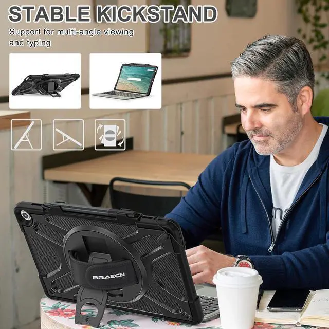 360°Rotating Stand and Wrist Strap: Features an integrated 360° rotating wristband stand, supporting vertical/horizontal angle adjustments for viewing, reading, or teaching scenarios while freeing your hands. The adjustable/rotatable wrist strap accommodates different hand sizes for adults, students, and children, comfortably supporting the Kindle Fire Max 11 (13th Gen) 2023 tablet.