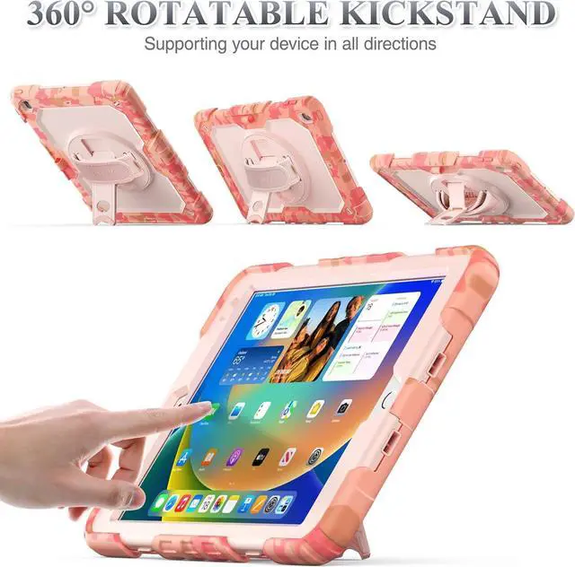 Soft Strap & Portable Shoulder Strap & Rotating Stand: Provide the protection and convenience when you play or work with iPad. Hang it anywhere for your entertainment, makes you using case for iPad 9th/8th/7th Generation easily. 360 Degrees rotating Kickstand provides convenient viewing, with soft strap, easy to use your case for iPad in your outdoor travelling, working, gaming with kids
