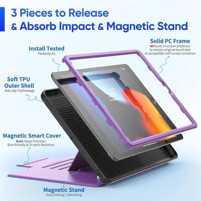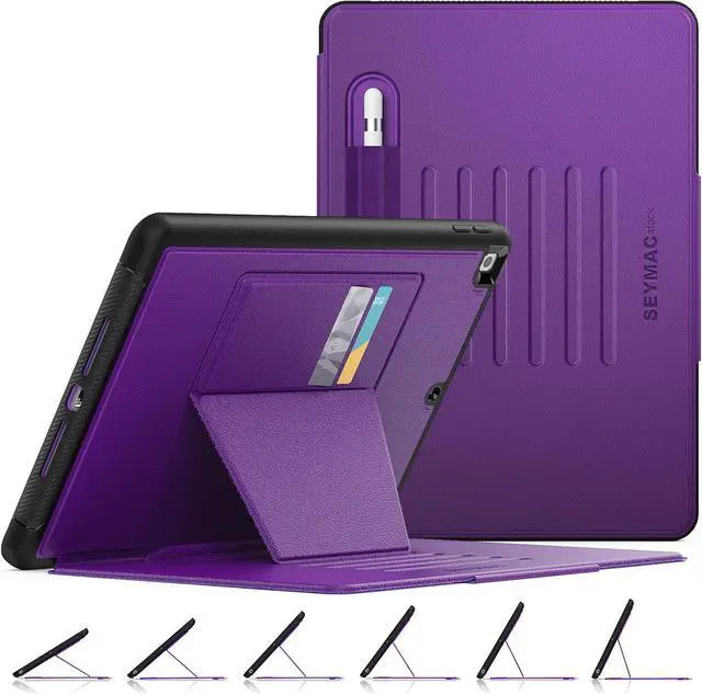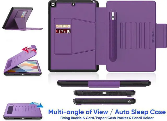 Case for iPad 9th/8th/7th Generation 10.2'', Strong Magnetic Auto Sleep Shockproof Case with Absorbing Multi-Angles Stand, Pen Holder, Card Slot (Purple)