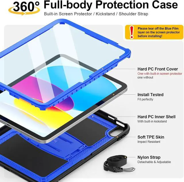 [Multifunctional Shoulder Strap]: The shoulder strap for iPad 10th/11th generation case is detachable and adjustable, convenient for both kids and adults to carry case for iPad 10th/11th Gen during hiking, traveling or other outdoor activities. You can use it to hang your tablet anywhere to free your hands for better enjoyment