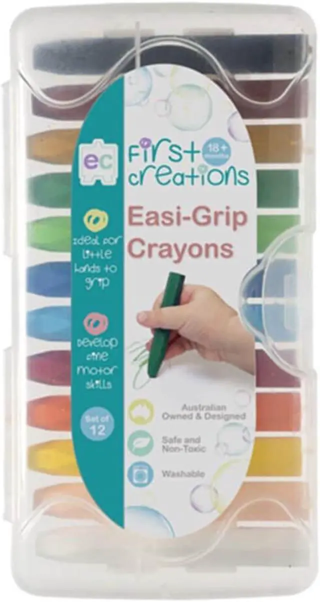 These First Creations Easi-Grip Crayons are perfect for early learners who are developing their creativity and learning to draw for the first time. These crayons have a hexagonal shape which makes them easy for small hands to grip and prevents them from rolling away when you put them down.