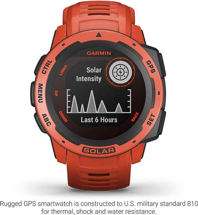 Garmin Instinct Solar-Powered Rugged Outdoor Smartwatch (Flame Red) comes with all the rich features for maximum effectiveness. Some of its highlights include Pulse Ox Sensor & Sleep Tracking, Respiration and Hydration Tracking, Body Battery Energy Monitoring, Solar-charge Battery, Trackback Routing, ABC Sensors, Multi-GNSS Support, Military Standard 810, and so on.