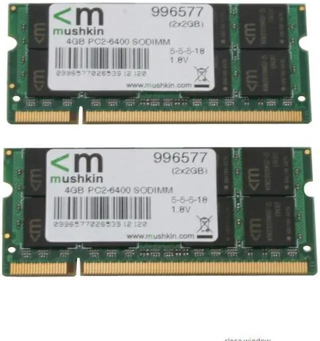 Mushkin Enhanced 4GB (2 x 2GB) Essentials DDR2 PC2-6400 800MHz 200-Pin Laptop Memory Model 996577