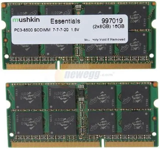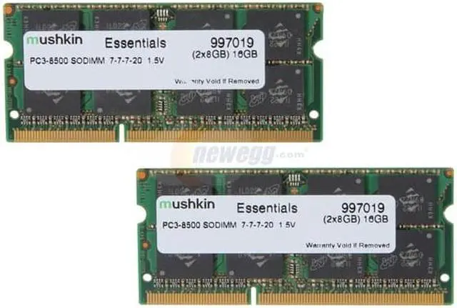 Mushkin Enhanced 16GB (2 x 8G) Essentials DDR3 PC3-8500 1066MHz 204-Pin Laptop Memory Model 997019