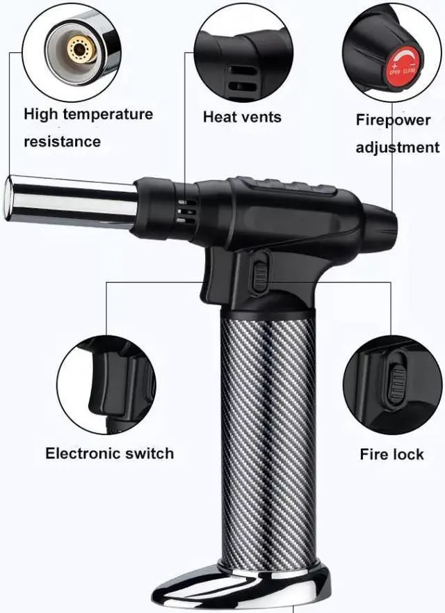 CARBON FIBER gun cigarette butane gas jet flame kitchen torch lighter for cooking