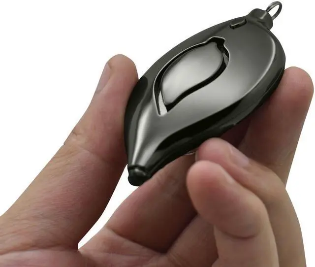 size: 72 x 40 x 16 mm. It weighs only 60 grams. Put EVA in a PP box and wrap it. The sound frequency is individually customized. From design to development, production takes 3 years. High decibel metal exterior Leaf-shaped individual security buzzer