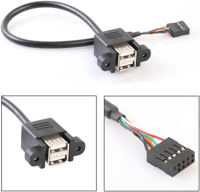 9 Pin Motherboard Header to 2 Ports USB 2.0 Female Cable Adapter 30cm Extension Cables Computer Connectors for PC