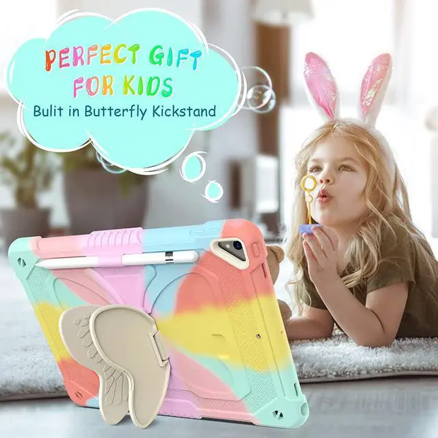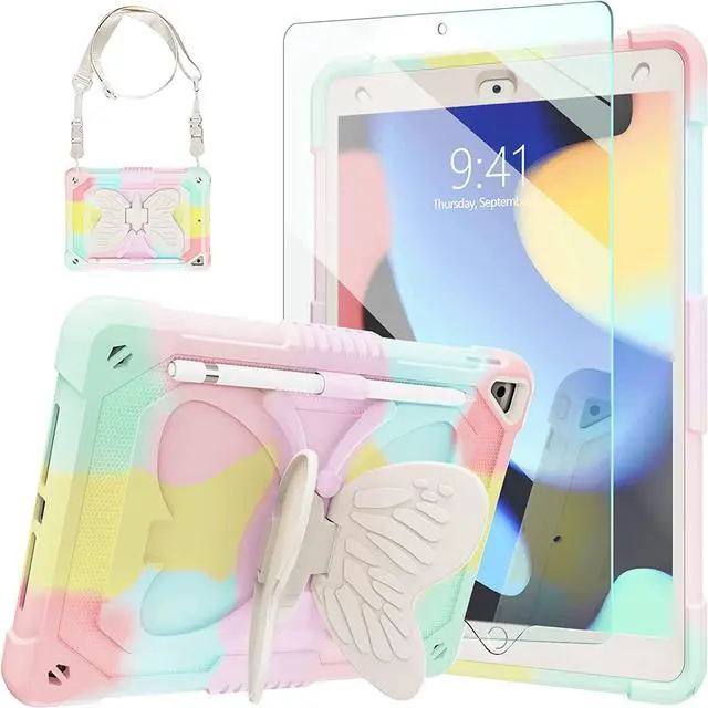 ??Built in Pencil Holder &Butterfly StandiPad 9th Generation Cases built-in Pencil holder allows you to store and carry your Apple pencil easily.The vivid butterfly stand design frees your hands and makes your iPad unique. Adjust the best angle to watch the video, working and typing.(APPLE Pencil is NOT included!)