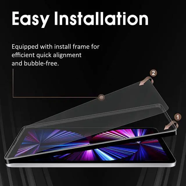 Easy installation: iPad Pro 11 2021 matte screen protector come with an install frame, the smooth iPad Pro 11 2021 matte screen protector adhered seamlessly to the screen with no bubbles. Make sure you get rid of dusts before you install.