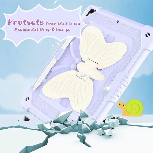 ??Built in Pencil Holder &Butterfly StandiPad 9th Generation Cases built-in Pencil holder allows you to store and carry your Apple pencil easily.The vivid butterfly stand design frees your hands and makes your iPad unique. Adjust the best angle to watch the video, working and typing.(APPLE Pencil is NOT included!)