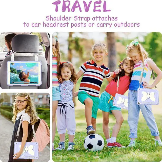 ??Adjustable Shoulder StrapAdjustable shoulder strap offers much more convenience for carrying your iPad when you are on a business trip or doing outdoor activities. It can be also hung on the car headrest for back-seat passengers\u2019 entertainment.