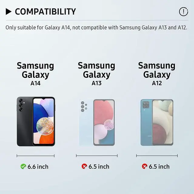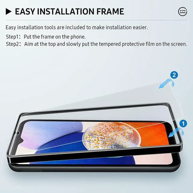 Compatible models: Matte tempered screen protector is specially designed for Samsung Galaxy A14 5G and is not compatible with other models. Fitted with an auxiliary mounting frame that fits the Galaxy A14 6.6-inch, it snaps quickly and auto-aligns for a perfect fit, with no bubbles and no white edges.