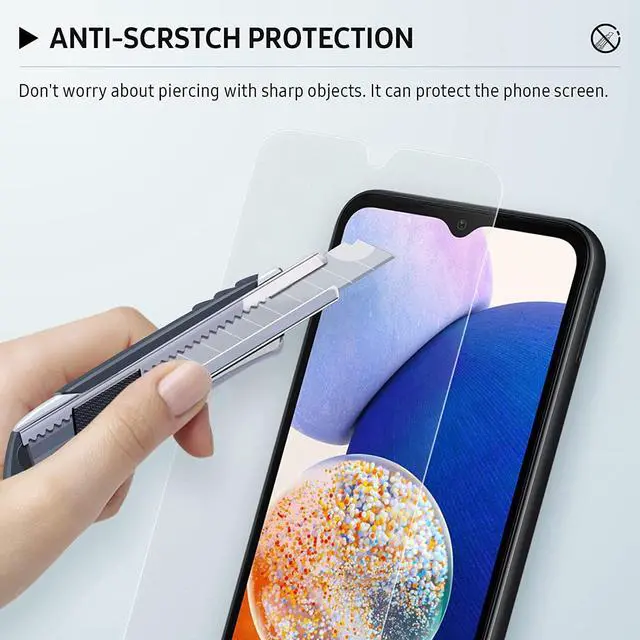 9H tempered glass material: Galaxy A14 screen protector is made of 9H tempered glass, which can effectively reduce screen cracks and scratches. Maintain the quick response capability of your Samsung Galaxy A14 screen.