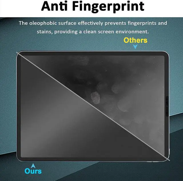? Anti-Glare & Fingerprint - This iPad air 5 10.9 inch papered glass screen protector with the matte finish it diffuses any possible glare. Makes drawing, sketching, and writing easy, even under the bright sun. The oleophobic coating on the surface can effectively prevent fingerprints, stains, water droplets and keep the screen clean.