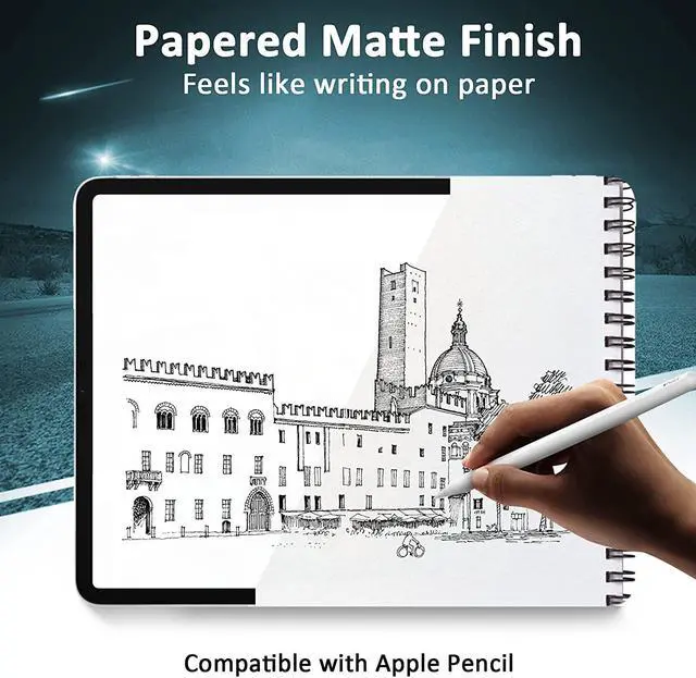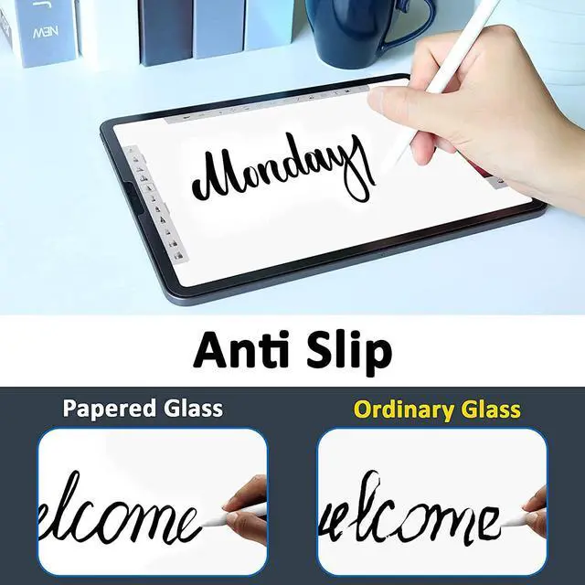Paper & Glass 2 in 1: This iPad air 5th generation screen protector is glass and the feel of paper, Crafted with 's Top of the Line Tempered Glass, which offering protection from scratches/scrapes unlike those that are just paper like. A textured surface for the Apple Pencil, giving your iPad the feel of writing on paper, it is the right tool for people who like to practice handwriting or like drawing with an iPad, or taking notes.