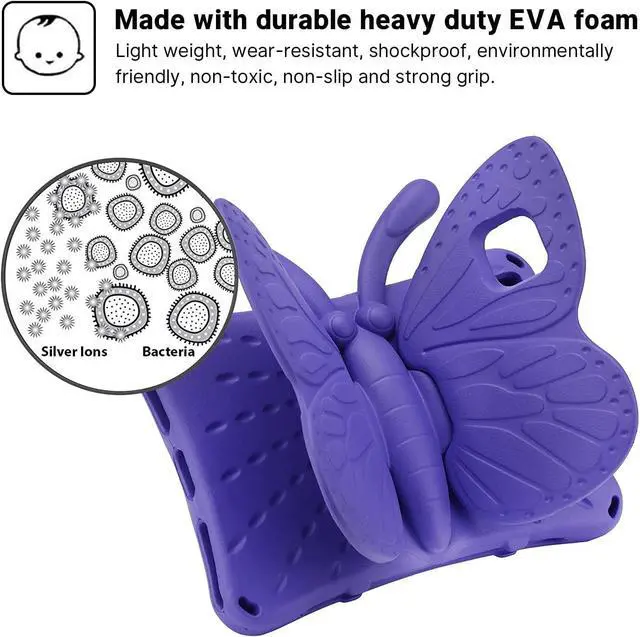 Material: Made with durable heavy duty EVA foam. Light weight, wear-resistant, shockproof, environmentally friendly, non-toxic, non-slip and strong grip. Provides double-layer 360-degree body protection while maintaining lightness. The thicker four corners protect the iPad and no longer worry about your baby accidentally falling off the iPad.