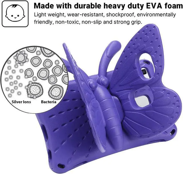Material: Made with durable heavy duty EVA foam. Light weight, wear-resistant, shockproof, environmentally friendly, non-toxic, non-slip and strong grip. Provides double-layer 360-degree body protection while maintaining lightness. The thicker four corners protect the iPad and no longer worry about your baby accidentally falling off the iPad.