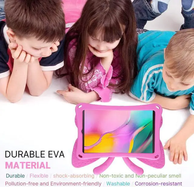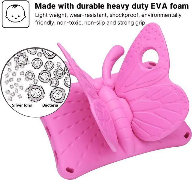 Material: Made with durable heavy duty EVA foam. Light weight, wear-resistant, shockproof, environmentally friendly, non-toxic, non-slip and strong grip. Provides double-layer 360-degree body protection while maintaining lightness. The thicker four corners protect the iPad and no longer worry about your baby accidentally falling off the iPad.