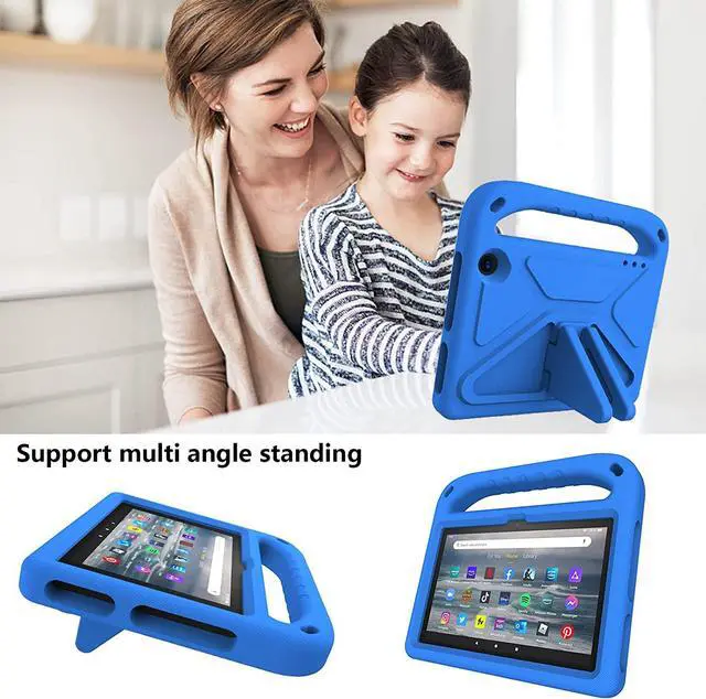Fire 7 2022 12th Gen Kids case with Handle Stand Amazon Fire 7 EVA Kid-Proof Rugged Shockproof Full Cover Fire 7 Case for Boy Girl Kids (Blue)