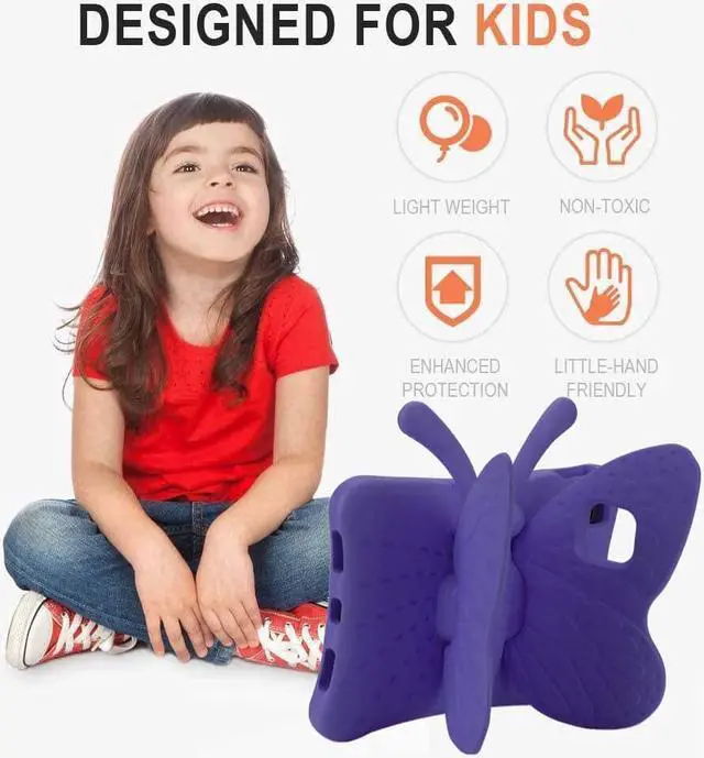 Designed For Kids Cute and beautiful butterfly design, open the wings to become a stand,Your baby will squealed with delight when they saw it.Considering if you have kids who are tablet users which can prolong the device by having a protective case.ideal for boys, girls, toddlers, school, special needs, Gift,Family, kindergarten, or child training classes are indispensable!
