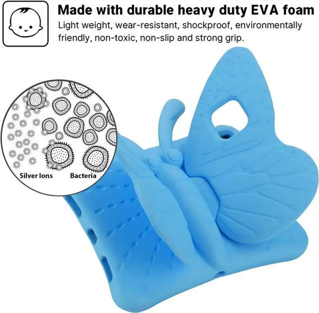 Designed For Kids Cute and beautiful butterfly design, open the wings to become a stand,Your baby will squealed with delight when they saw it.Considering if you have kids who are tablet users which can prolong the device by having a protective case.ideal for boys, girls, toddlers, school, special needs, Gift,Family, kindergarten, or child training classes are indispensable!