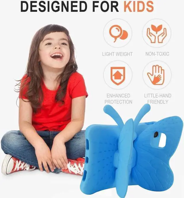 Designed For Kids Cute and beautiful butterfly design, open the wings to become a stand,Your baby will squealed with delight when they saw it.Considering if you have kids who are tablet users which can prolong the device by having a protective case.ideal for boys, girls, toddlers, school, special needs, Gift,Family, kindergarten, or child training classes are indispensable!