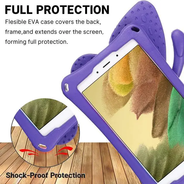 Kid-tested KIDS SAFE & TESTED.This EVA rugged case can protection against child's rough throws and falls on the floor and against the walls from unforgivable heights. The foam creates enough of a lip all the way around to protect the screen too,which is a must in BABY family.