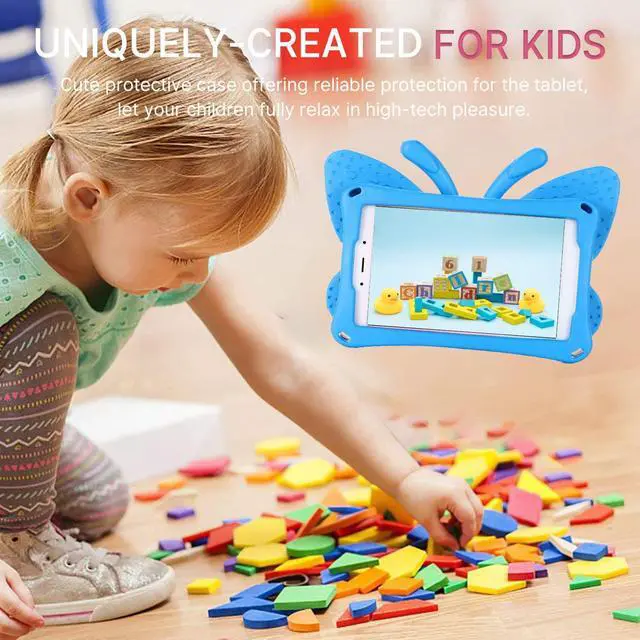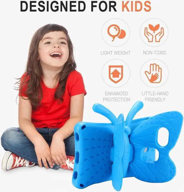 Designed For Kids Cute and beautiful butterfly design, open the wings to become a stand,Your baby will squealed with delight when they saw it.Considering if you have kids who are tablet users which can prolong the device by having a protective case.ideal for boys, girls, toddlers, school, special needs, Gift,Family, kindergarten, or child training classes are indispensable!