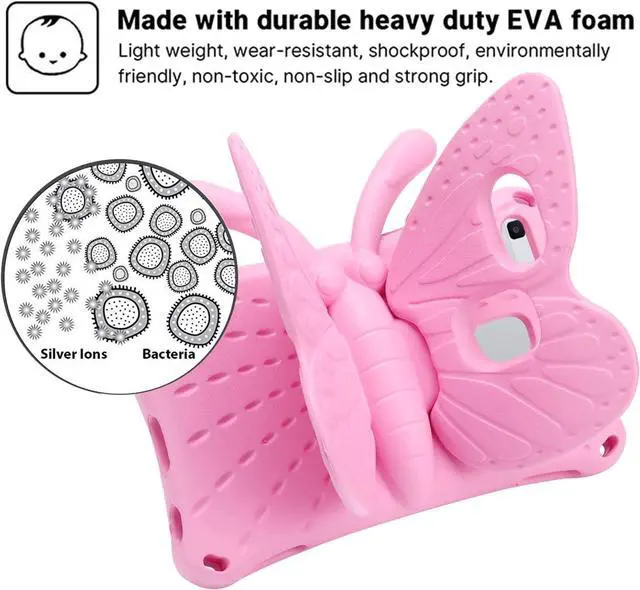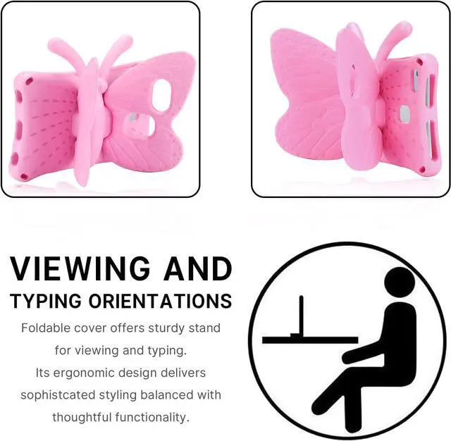 Designed For Kids Cute and beautiful butterfly design, open the wings to become a stand,Your baby will squealed with delight when they saw it.Considering if you have kids who are tablet users which can prolong the device by having a protective case.ideal for boys, girls, toddlers, school, special needs, Gift,Family, kindergarten, or child training classes are indispensable!