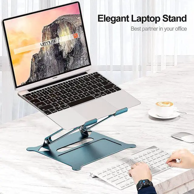 Urmust Laptop Notebook Stand Holder Adjustable Ultrabook Stand Riser Portable Compatible with MacBook Air Pro HP Dell XPS Lenovo All laptops 10-15.6"(Blue)
